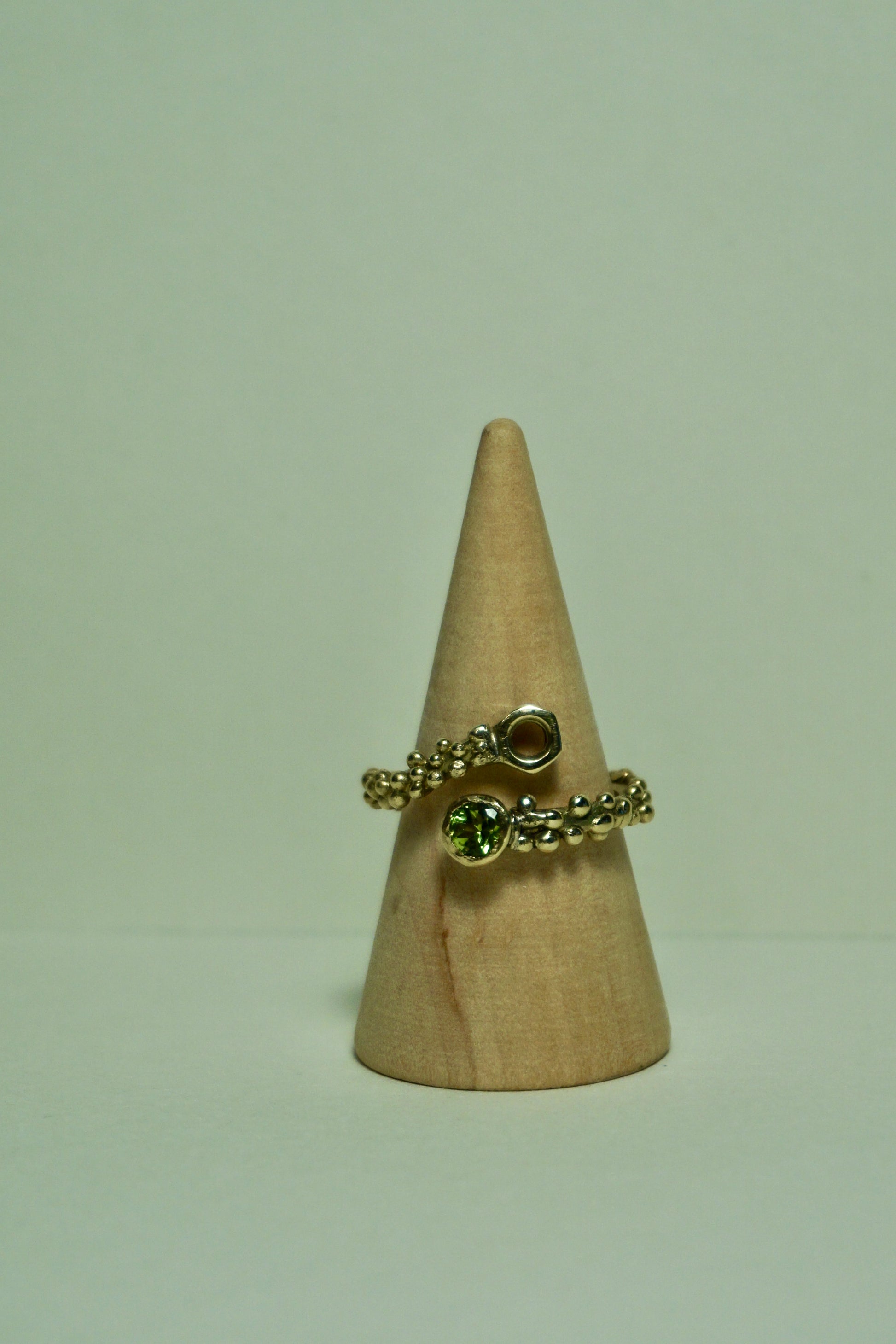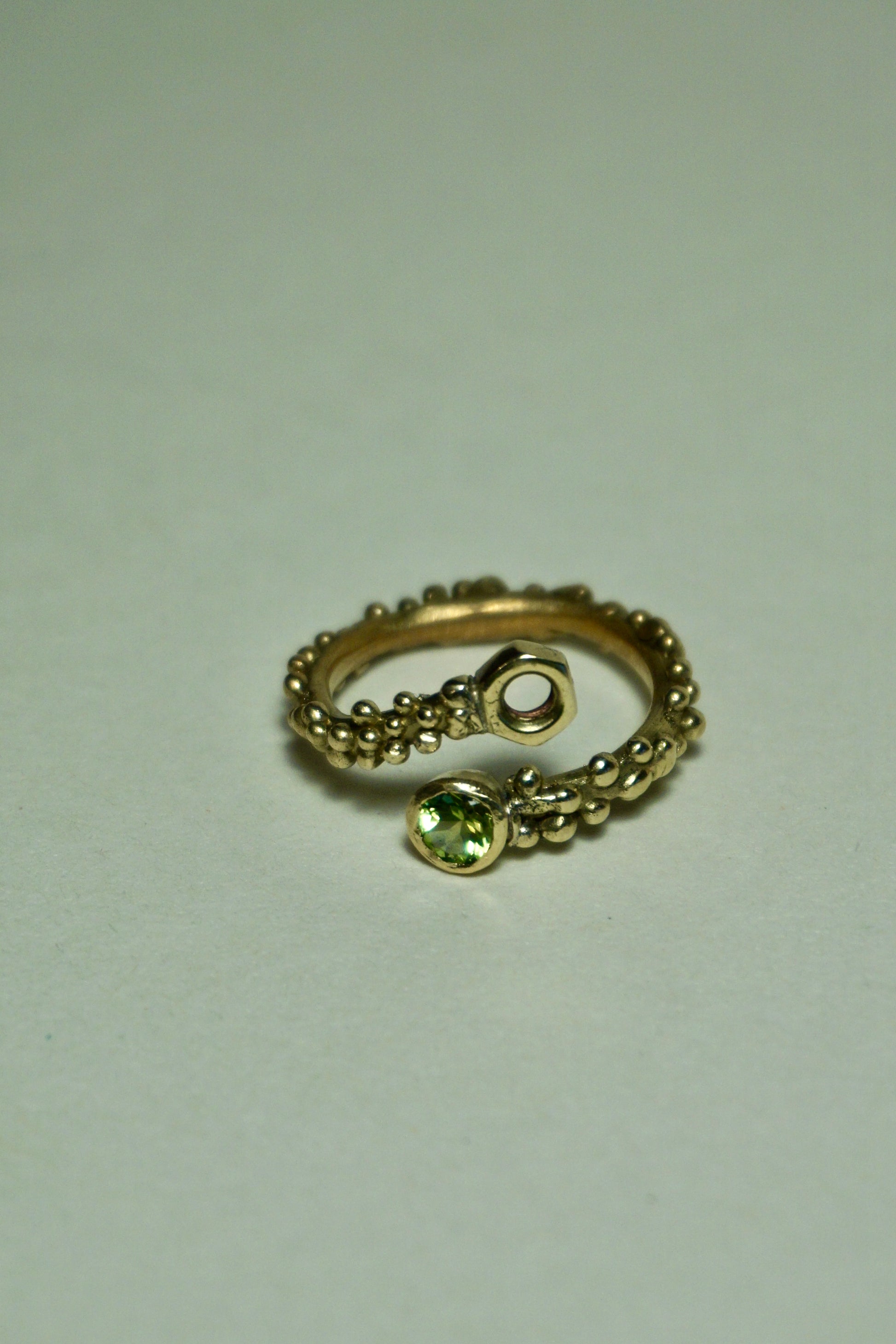 Anello realizzato a mano in ottone con dado e pietre di Peridoto.